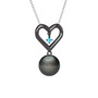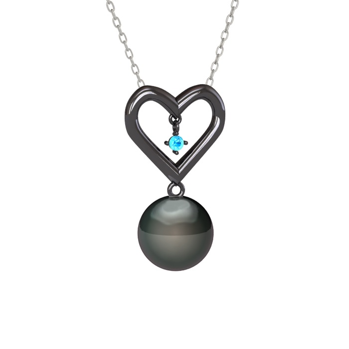Siyah inci ve akuamarin 925 ayar siyah rodyum kaplama gümüş kolye (40 cm beyaz altın rolo zincir)