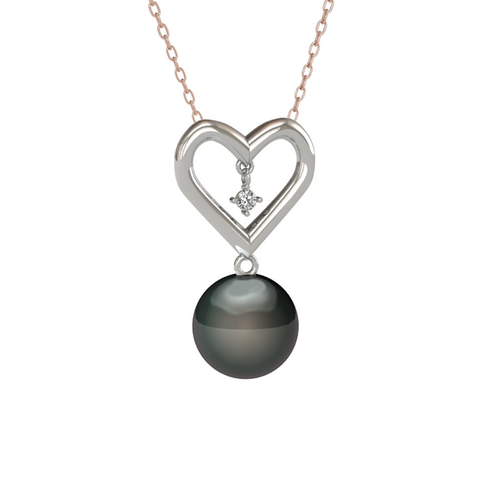 Siyah inci ve beyaz zirkon 14 ayar beyaz altın kolye (40 cm rose altın rolo zincir)