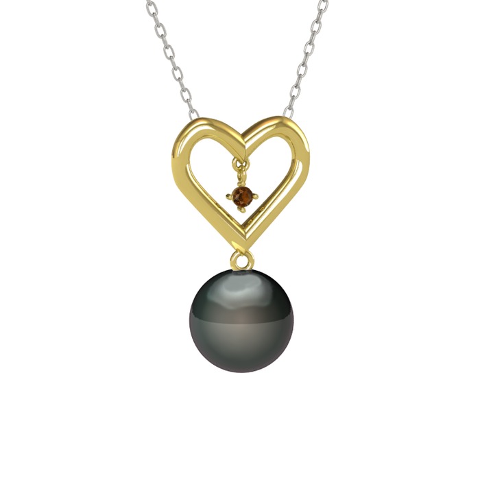 Siyah inci ve dumanlı kuvars 18 ayar altın kolye (40 cm beyaz altın rolo zincir)