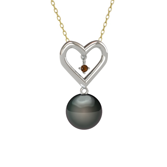 Siyah inci ve dumanlı kuvars 8 ayar beyaz altın kolye (40 cm altın rolo zincir)