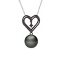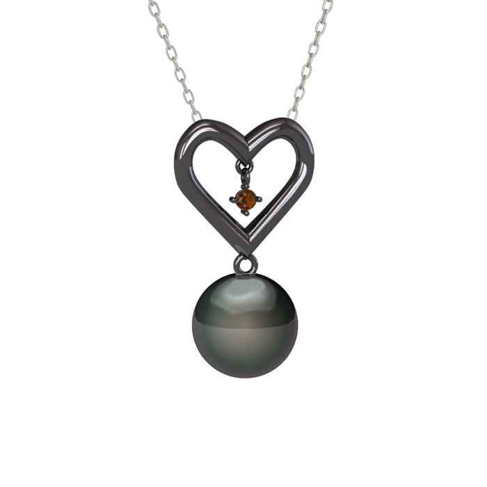 Siyah inci ve dumanlı kuvars 925 ayar siyah rodyum kaplama gümüş kolye (40 cm beyaz altın rolo zincir)
