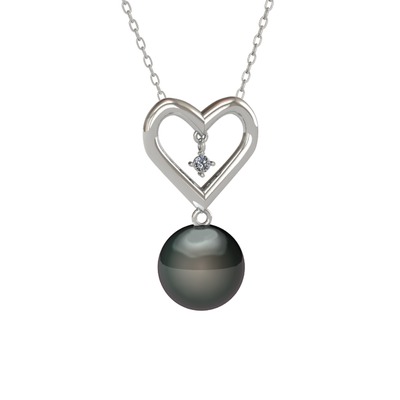 Siyah inci ve elmas 8 ayar beyaz altın kolye (0.036 karat, 40 cm beyaz altın rolo zincir)