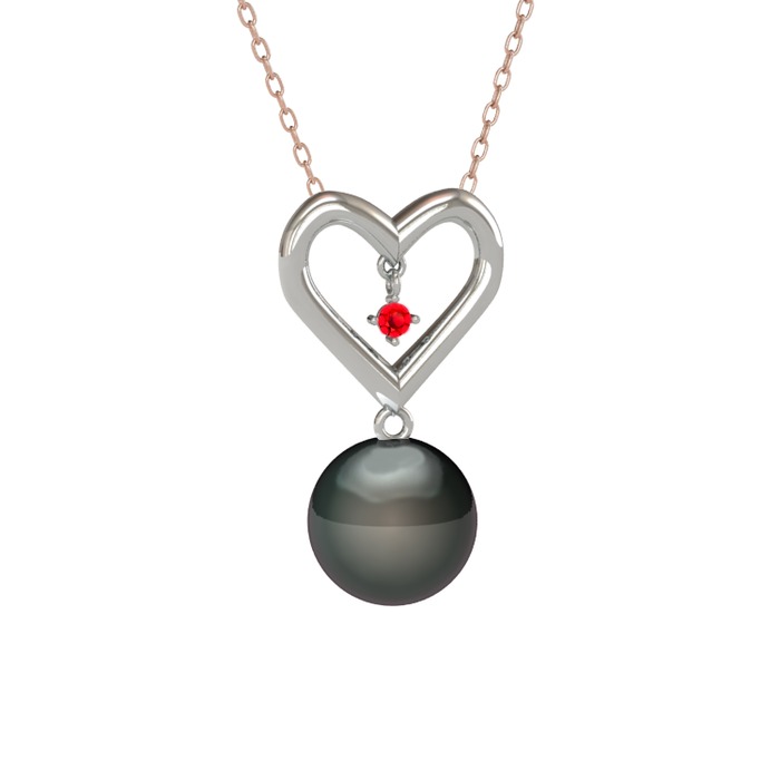 Siyah inci ve garnet 14 ayar beyaz altın kolye (40 cm rose altın rolo zincir)