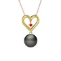 Siyah inci ve garnet 925 ayar altın kaplama gümüş kolye (40 cm rose altın rolo zincir)