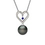 Siyah inci ve lab safir 8 ayar beyaz altın kolye (40 cm gümüş rolo zincir)