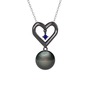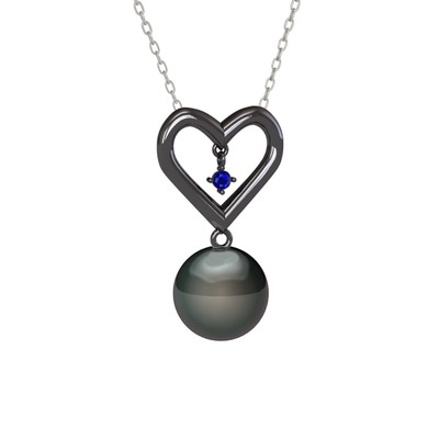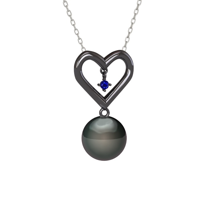 Siyah inci ve lab safir 925 ayar siyah rodyum kaplama gümüş kolye (40 cm beyaz altın rolo zincir)