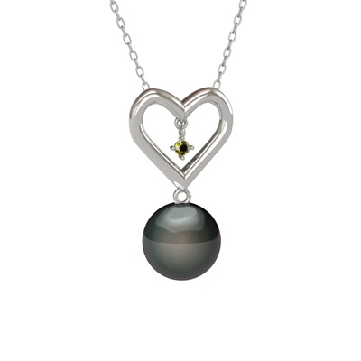 Siyah inci ve peridot 925 ayar gümüş kolye (40 cm gümüş rolo zincir)