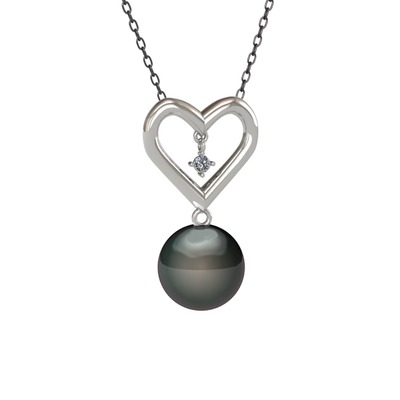 Siyah inci ve pırlanta 8 ayar beyaz altın kolye (0.036 karat, 40 cm gümüş rolo zincir)