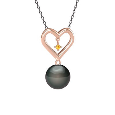 Siyah inci ve sitrin 8 ayar rose altın kolye (40 cm gümüş rolo zincir)