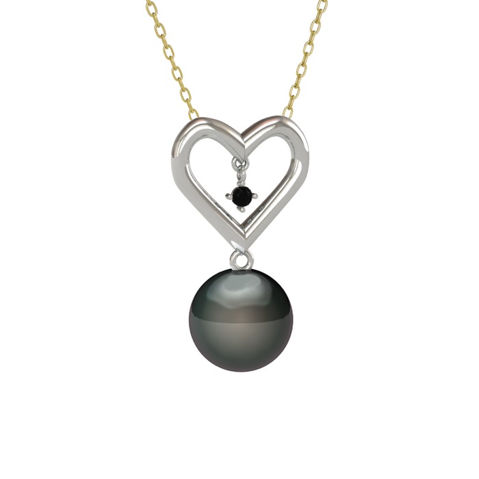 Siyah inci ve siyah zirkon 14 ayar beyaz altın kolye (40 cm altın rolo zincir)