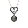 Siyah inci ve swarovski 925 ayar siyah rodyum kaplama gümüş kolye (40 cm rose altın rolo zincir)