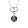 Siyah inci ve yeşil kuvars 18 ayar beyaz altın kolye (40 cm gümüş rolo zincir)