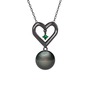 Siyah inci ve yeşil kuvars 925 ayar siyah rodyum kaplama gümüş kolye (40 cm gümüş rolo zincir)