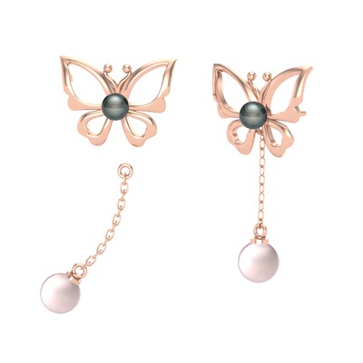 Siyah inci ve pembe inci 925 ayar rose altın kaplama gümüş küpe