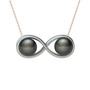 Siyah inci 925 ayar gümüş kolye (40 cm rose altın rolo zincir)