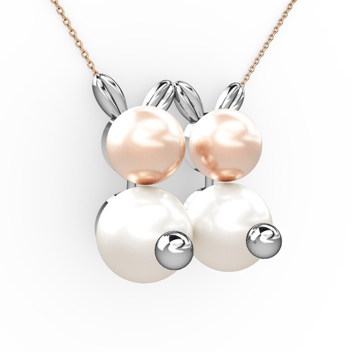 Inci ve pembe inci 18 ayar beyaz altın kolye (40 cm rose altın rolo zincir)
