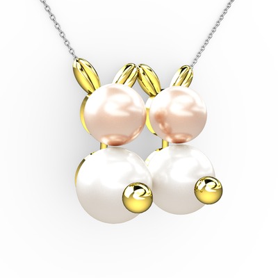Inci ve pembe inci 8 ayar altın kolye (40 cm gümüş rolo zincir)