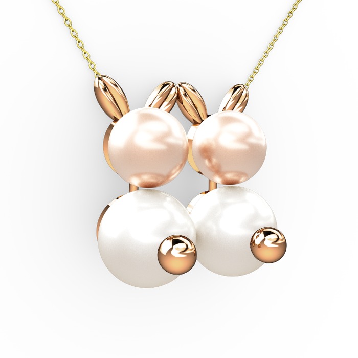 Inci ve pembe inci 925 ayar rose altın kaplama gümüş kolye (40 cm altın rolo zincir)