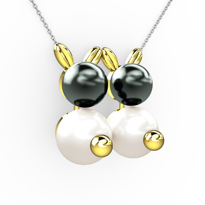 Inci ve siyah inci 14 ayar altın kolye (40 cm beyaz altın rolo zincir)