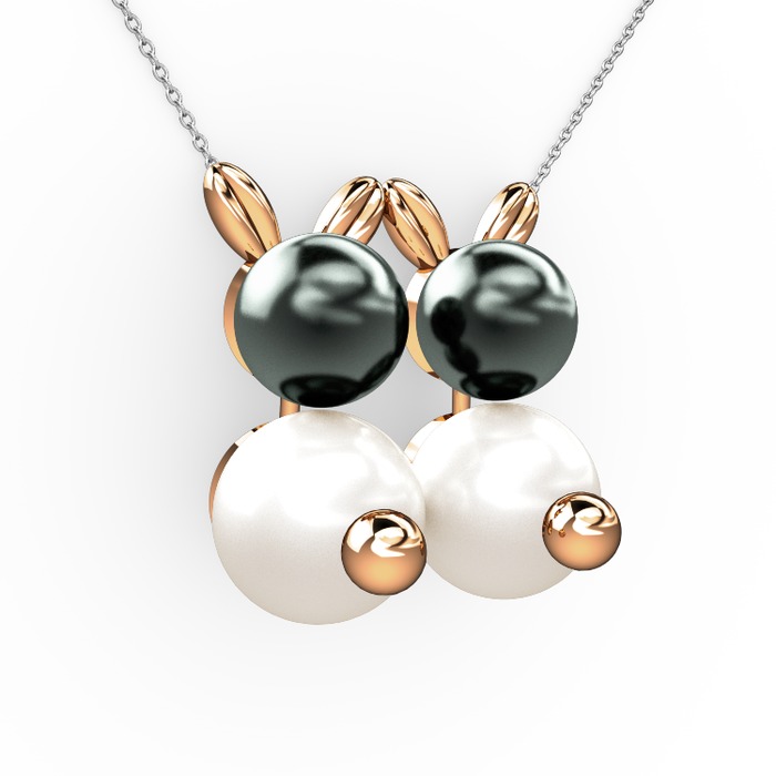 Inci ve siyah inci 14 ayar rose altın kolye (40 cm gümüş rolo zincir)
