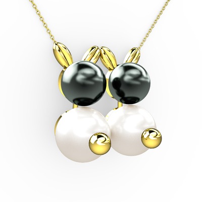 Inci ve siyah inci 18 ayar altın kolye (40 cm altın rolo zincir)