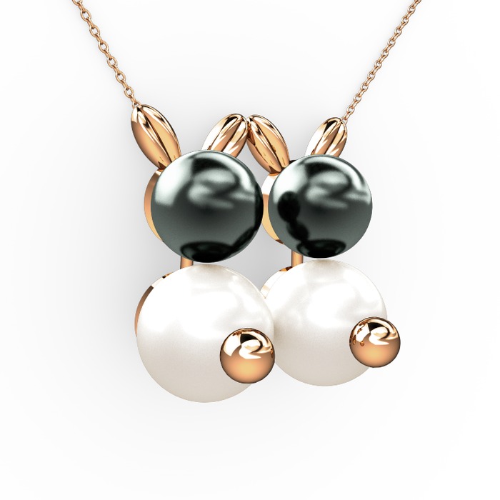 Inci ve siyah inci 8 ayar rose altın kolye (40 cm rose altın rolo zincir)