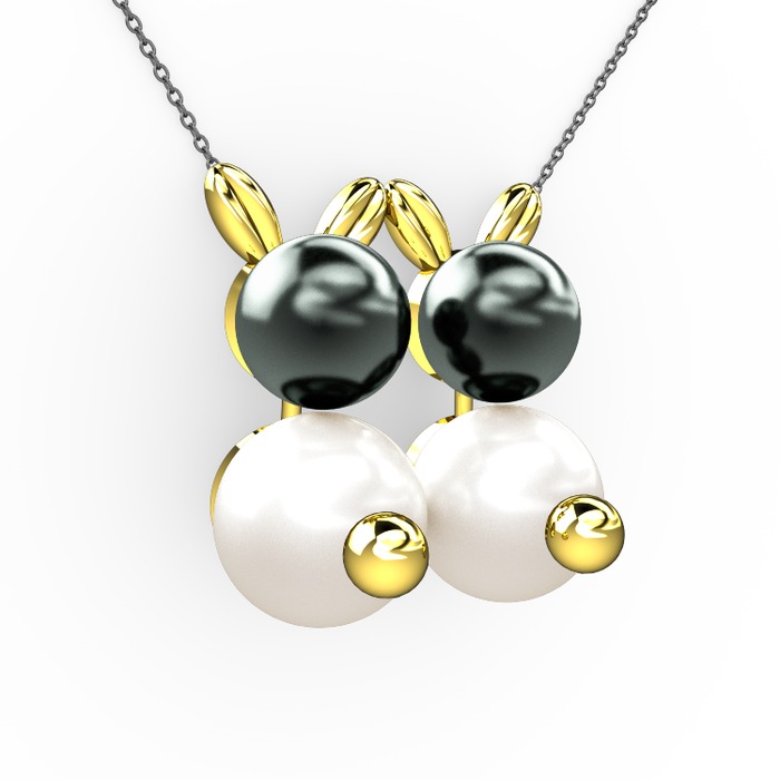 Inci ve siyah inci 925 ayar altın kaplama gümüş kolye (40 cm gümüş rolo zincir)
