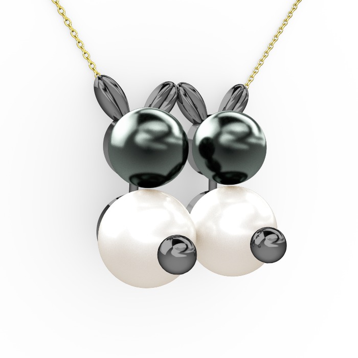 Inci ve siyah inci 925 ayar siyah rodyum kaplama gümüş kolye (40 cm altın rolo zincir)