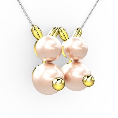 Pembe inci 14 ayar altın kolye (40 cm beyaz altın rolo zincir)