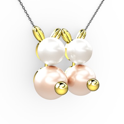 Pembe inci ve inci 8 ayar altın kolye (40 cm gümüş rolo zincir)