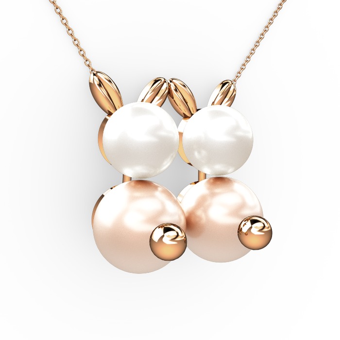 Pembe inci ve inci 8 ayar rose altın kolye (40 cm gümüş rolo zincir)