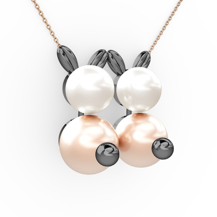 Pembe inci ve inci 925 ayar siyah rodyum kaplama gümüş kolye (40 cm rose altın rolo zincir)