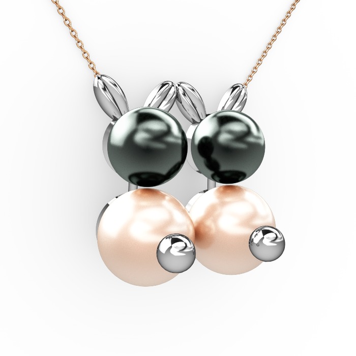 Pembe inci ve siyah inci 18 ayar beyaz altın kolye (40 cm rose altın rolo zincir)