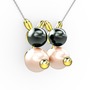 Pembe inci ve siyah inci 925 ayar altın kaplama gümüş kolye (40 cm beyaz altın rolo zincir)