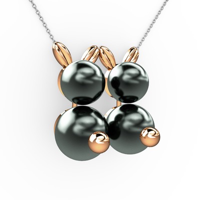 Siyah inci 14 ayar rose altın kolye (40 cm beyaz altın rolo zincir)