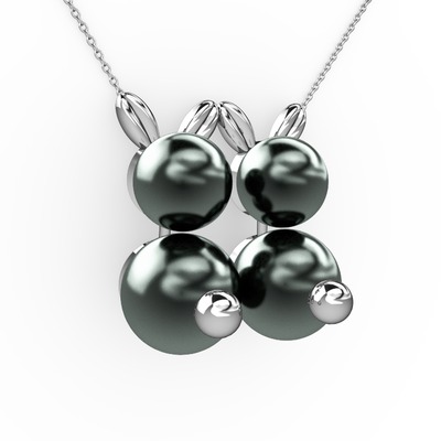 Siyah inci 8 ayar beyaz altın kolye (40 cm gümüş rolo zincir)