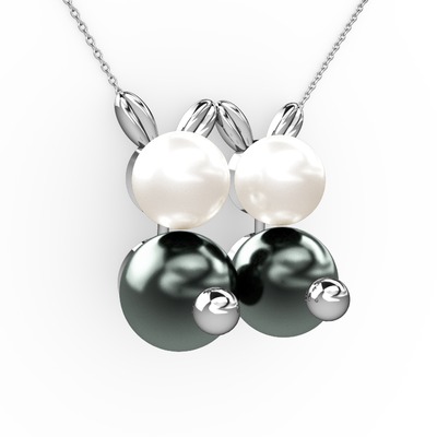 Siyah inci ve inci 14 ayar beyaz altın kolye (40 cm beyaz altın rolo zincir)