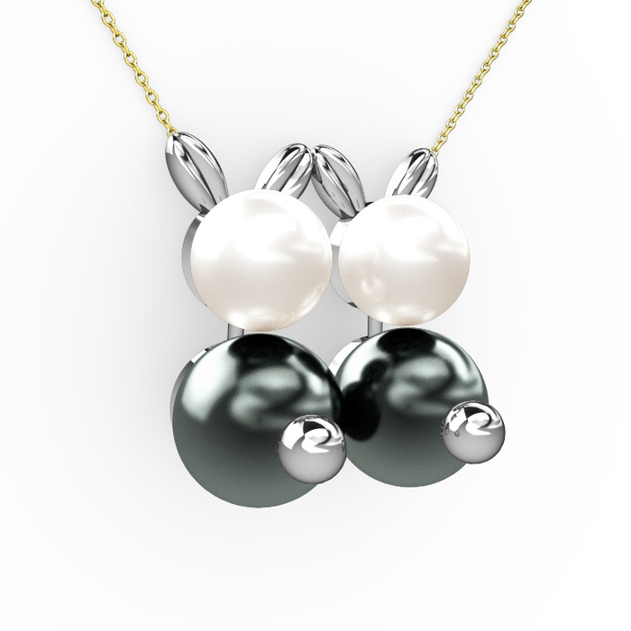 Siyah inci ve inci 18 ayar beyaz altın kolye (40 cm altın rolo zincir)