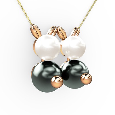 Siyah inci ve inci 18 ayar rose altın kolye (40 cm altın rolo zincir)