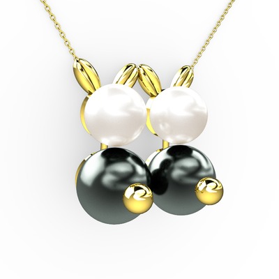Siyah inci ve inci 925 ayar altın kaplama gümüş kolye (40 cm altın rolo zincir)