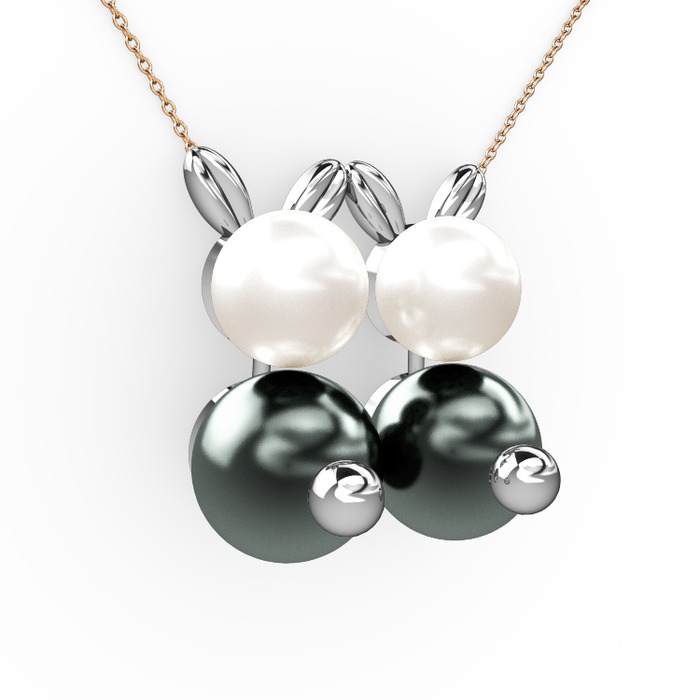 Siyah inci ve inci 925 ayar gümüş kolye (40 cm rose altın rolo zincir)