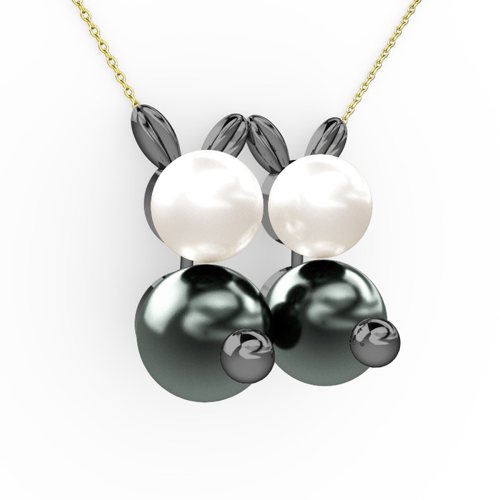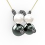 Siyah inci ve inci 925 ayar siyah rodyum kaplama gümüş kolye (40 cm gümüş rolo zincir)