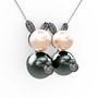 Siyah inci ve pembe inci 925 ayar siyah rodyum kaplama gümüş kolye (40 cm beyaz altın rolo zincir)