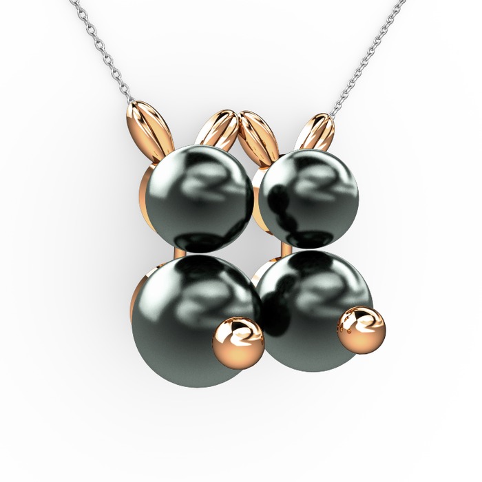 Siyah inci 925 ayar rose altın kaplama gümüş kolye (40 cm beyaz altın rolo zincir)