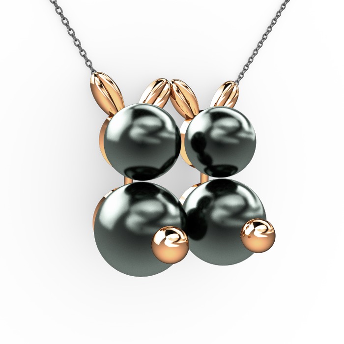 Siyah inci 925 ayar rose altın kaplama gümüş kolye (40 cm gümüş rolo zincir)
