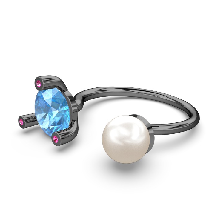 Inci, akuamarin ve rodolit garnet 925 ayar siyah rodyum kaplama gümüş yüzük