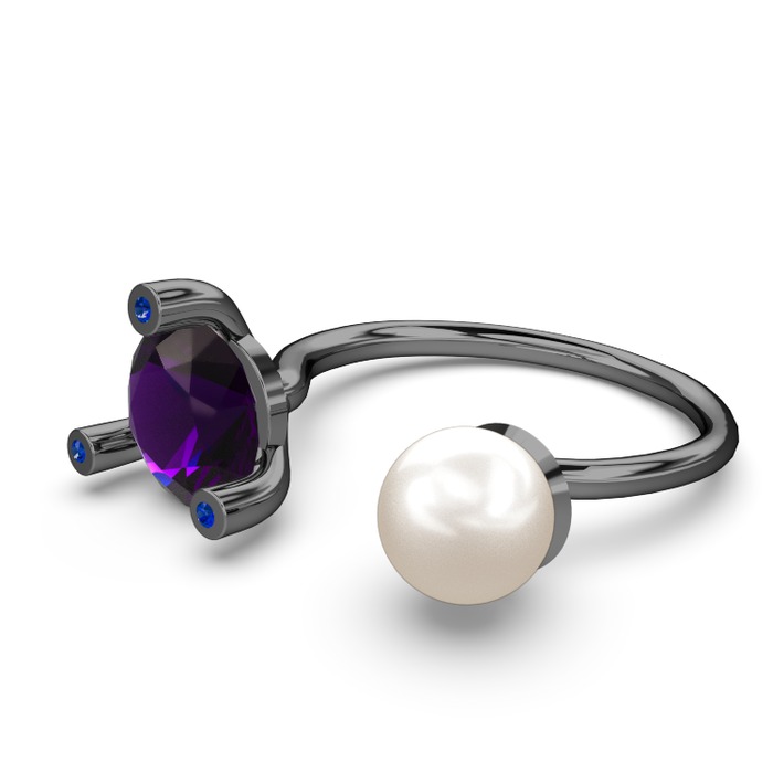 Inci, ametist ve lab safir 925 ayar siyah rodyum kaplama gümüş yüzük