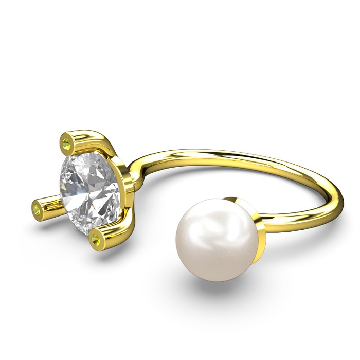 Inci, beyaz zirkon ve peridot 8 ayar altın yüzük
