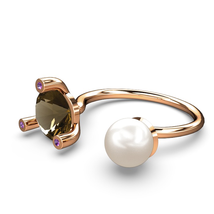 Inci, dumanlı kuvars ve ametist 8 ayar rose altın yüzük
