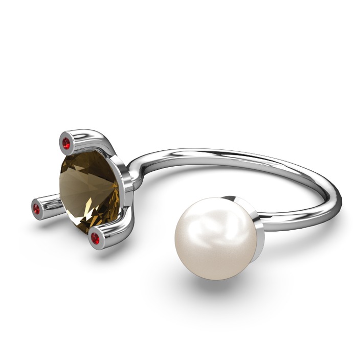 Inci, dumanlı kuvars ve garnet 8 ayar beyaz altın yüzük